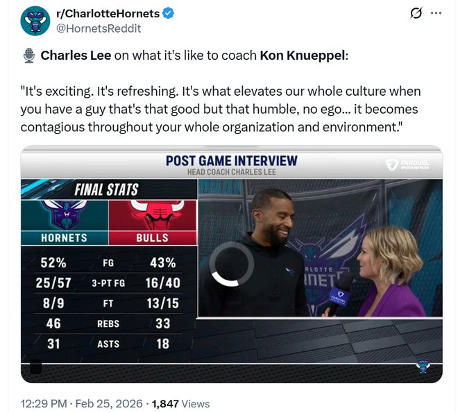 黄蜂主帅查尔斯-李更是称赞道:“拥有他这样一名既有实力又谦逊、不会以自我为中心的球员真的让人兴奋,也让人耳目一新,他的态度会在整个团队和环境中积极传递开来。”